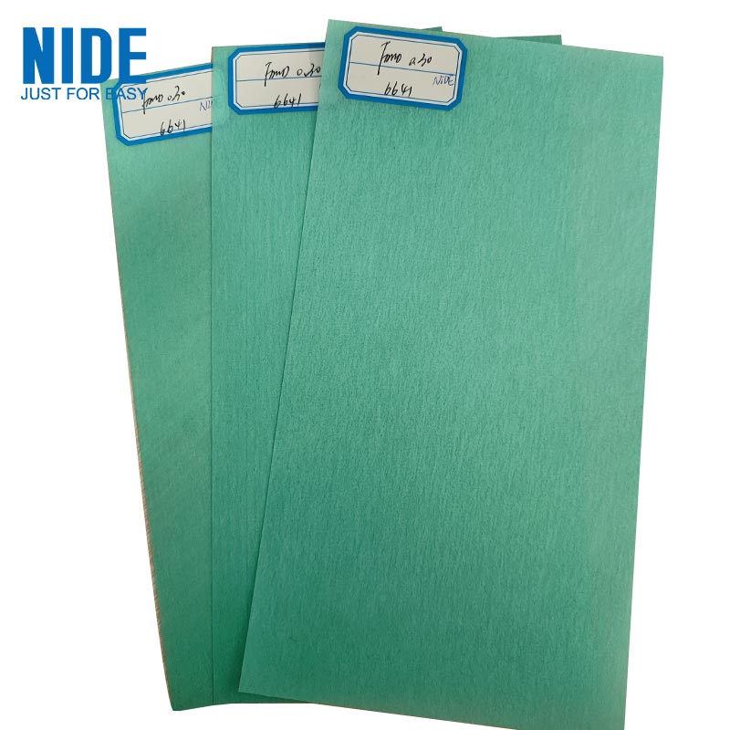 Трехслойный композитный материал 6641 DMD, связанный смолой класса F, имеет рейтинг термостойкости 155 °C. Он в основном используется для изоляции пазов, межвитковой изоляции, прокладочной изоляции, изоляции трансформатора двигателей серии Y2 или других низковольтных двигателей. Его также можно использовать для изоляции электрических катушек класса F.